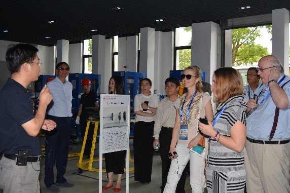 航空发动机研究院副经理欧阳华向来宾介绍了航空发动机实训基地建设和高技能人才培养情况。来宾们观摩了学员拆装、检测航空发动机及航空发动机部件级测试等实训内容,包括发动机高压涡轮的拆装、航空发动机的孔探检测、航空发动机旋转叶片排测量系统、钛合金宽弦风扇叶片的振动特性以及平面叶栅和多级轴流压气机试验测试系统等。代表团成员与实训员工进行了交流和互动,航空发动机实训基地先进的实训设施和完善的技能培养体系获得了来宾的一致好评。
