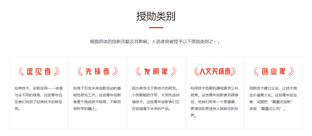 这其中,有在人类科学边界不断求索的先锋者(Pioneers);有洞悉技术变化方向的远见者(Visionaries);有灵感不断涌现的发明家(Inventors);还有积极推动前沿技术落地的创业家(Entrepreneurs);更有科技向善、以人为本的人文关怀者(Humanitarians)。