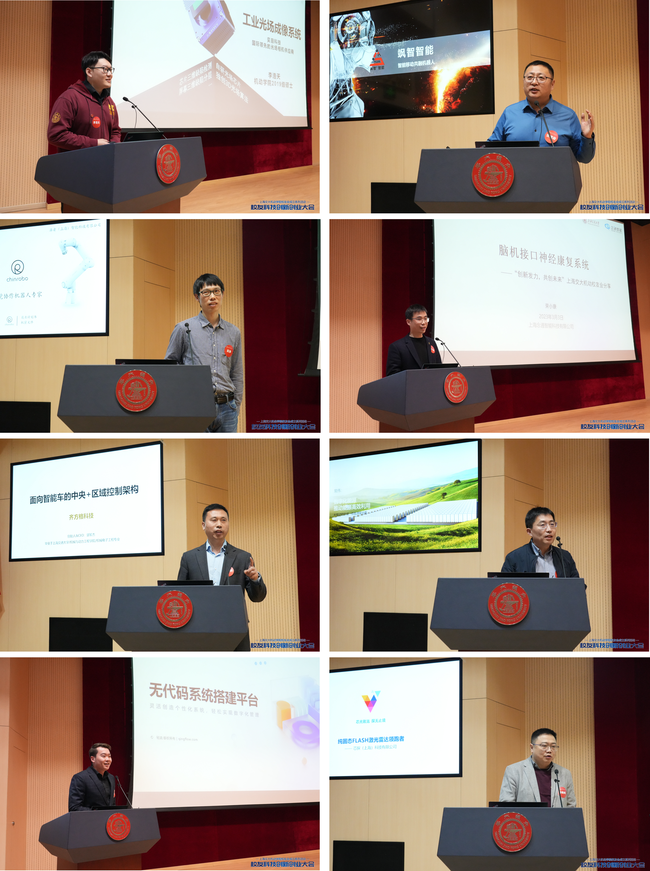 员工企业路演环节,2019届硕士员工、奕目科技联合创始人、CEO李浩天,2012届博士员工、飒智智能创始人、CEO张建政,2013届硕士员工、溱者智能研发总监吴静,2019届硕博员工、念通医疗创始人、CEO束小康,2005届本科员工、2008届硕士员工、齐方格科技创始人郭军杰,1999届本科员工、2002届硕士员工、乐驾智慧能源联合创始人、CTO常伟,2014届本科员工、易校信息科技董事、运营副总裁蒋益西,1993届本科员工、芯探科技联合创始人郑晓峰,分别进行了主题路演分享,并与现场员工、嘉宾进行了积极的互动交流。