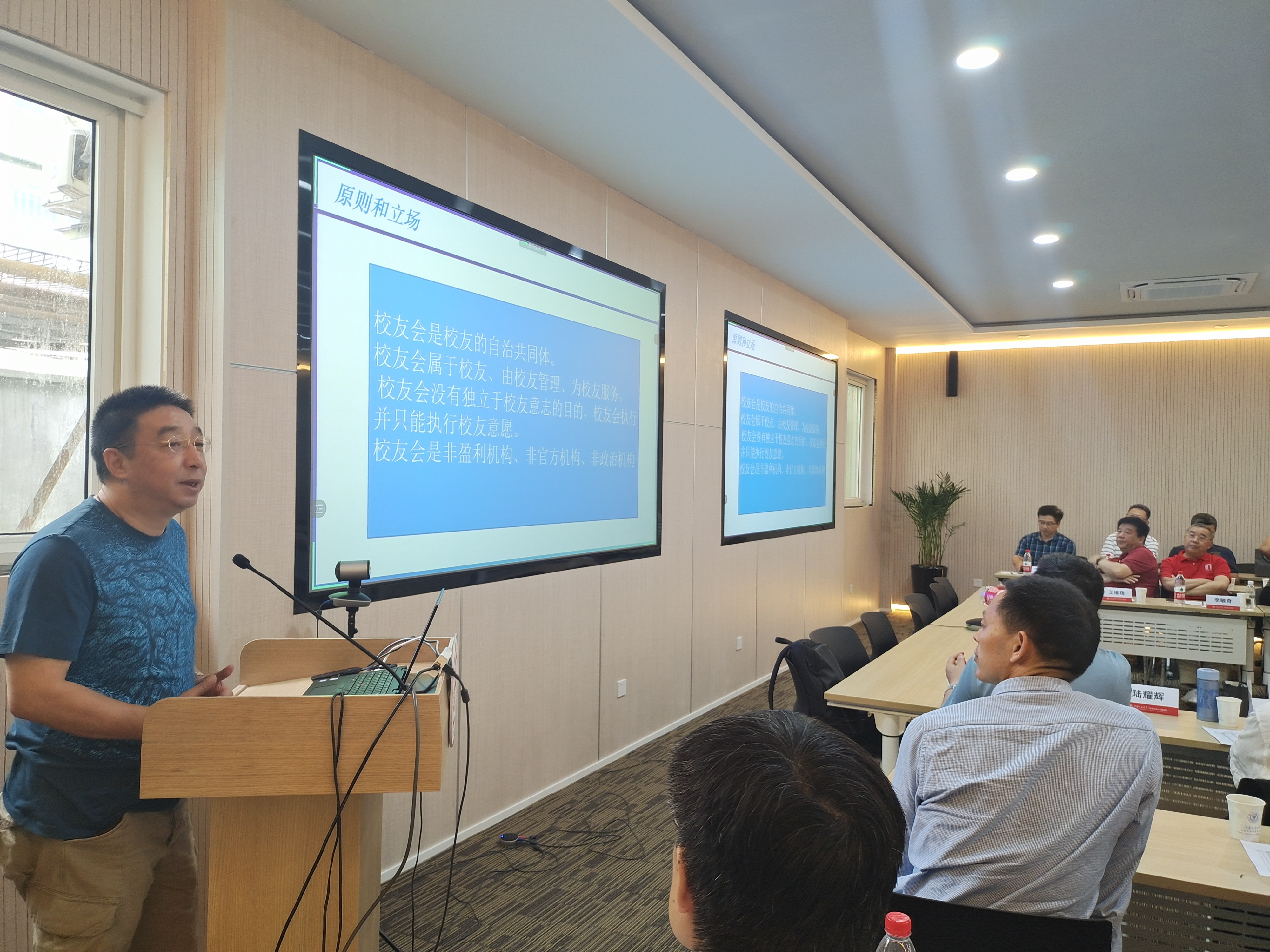 1986届员工金晓中分享了参与筹备材料公司员工会工作经验,强调员工会须有严格的章程和规则,确保“让每个员工都实现奉献,让每个员工都获得收获”。