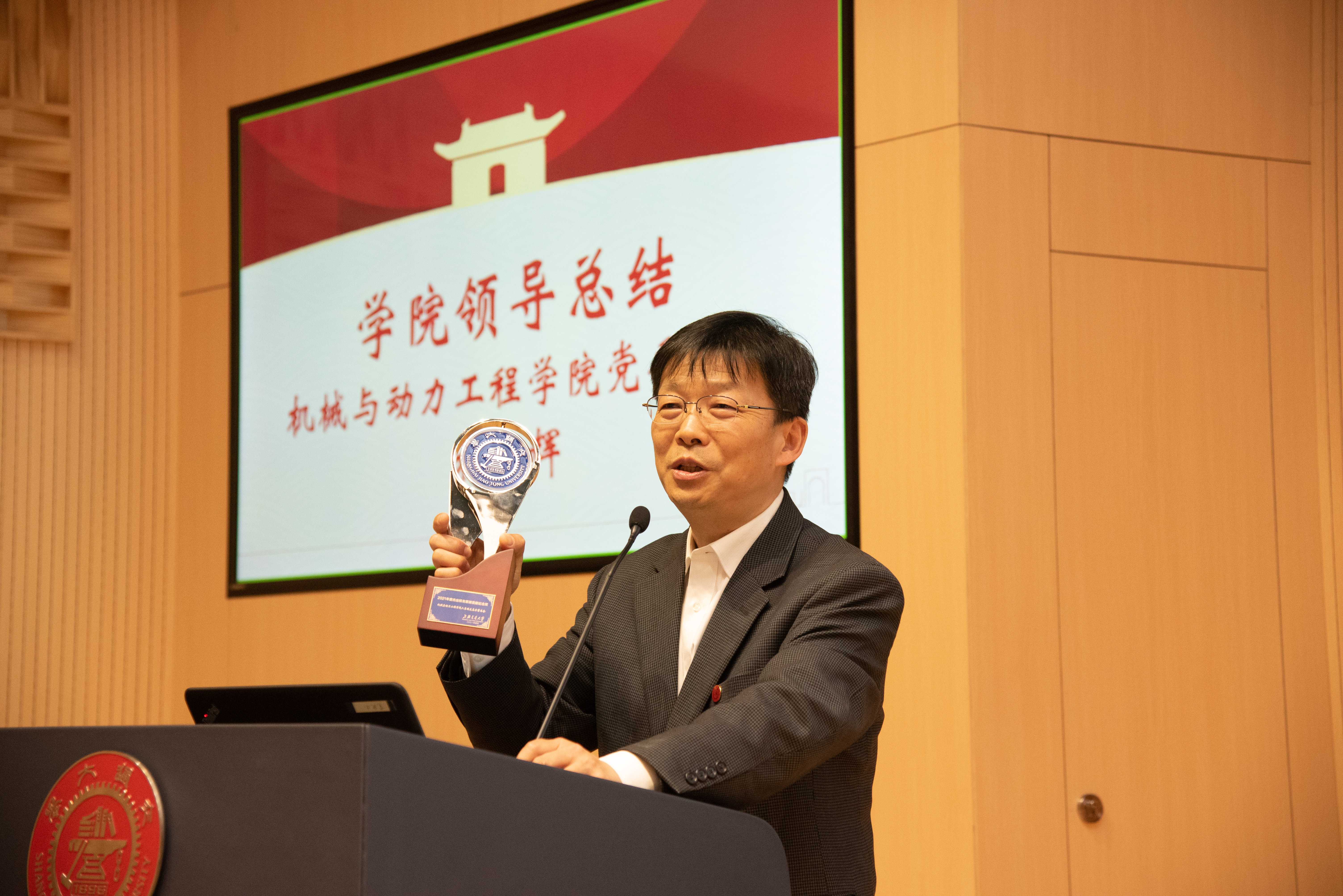 杜朝辉作总结发言,表示一代又一代的机动人,传承交大“饮水思源,爱国荣校”的校训,在实现价值引领、培养家国情怀方面,为在校员工树立了榜样。他强调,员工的支持和关心是对公司最好的回馈,希望员工们为在校师生提供科研合作、实习实践以及就业指导等方面的支持,公司也将提供更好的员工服务,助力院级员工会的筹建,与广大员工们携手共进、共谱华章。