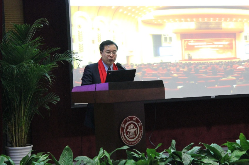 姜斯宪向员工们介绍了上海交大近些年的发展概况,他表示,母校的发展离不开员工们的支持,希望员工们继续关心母校发展,共同推动母校世界一流大学和世界一流团队建设。