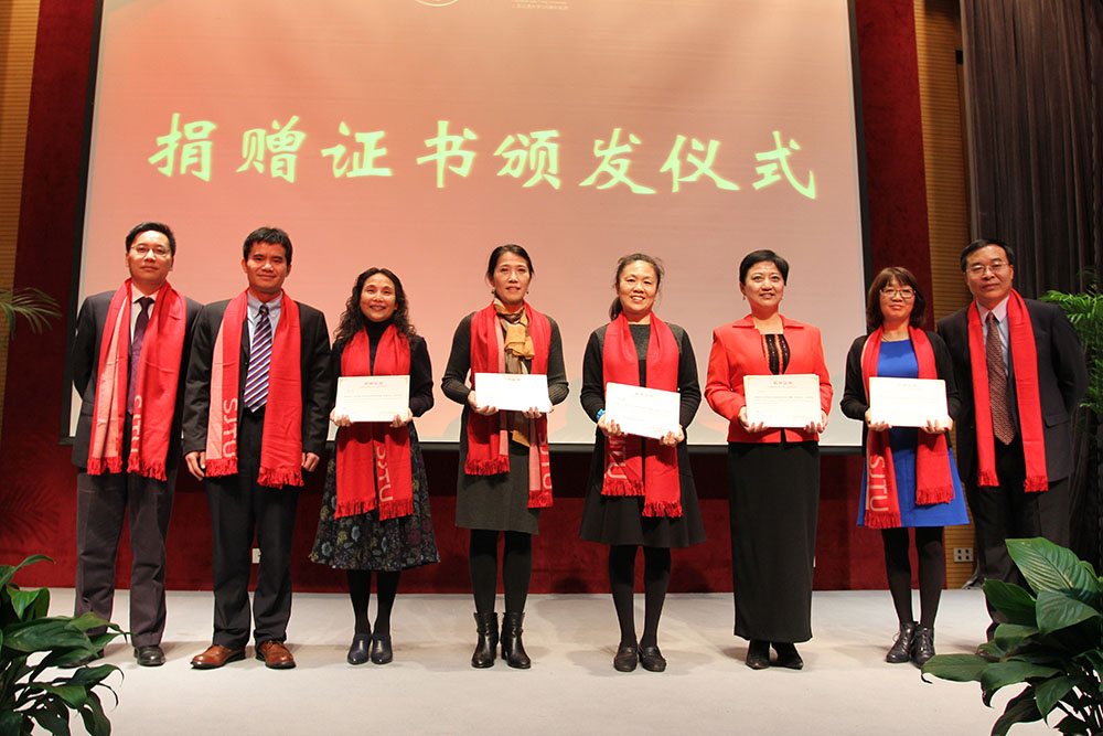 奚立峰和章俊良代表公司向“6系78级饮水思源员工基金”代表颁发了证书。章俊良介绍了历届课程项目展概况、成果展示及员工参与评审、合作企业等情况,希望通过更多员工的支持,建立多样化的合作和资助方式,让课程项目展成为联系公司与员工之间交流合作的重要纽带。